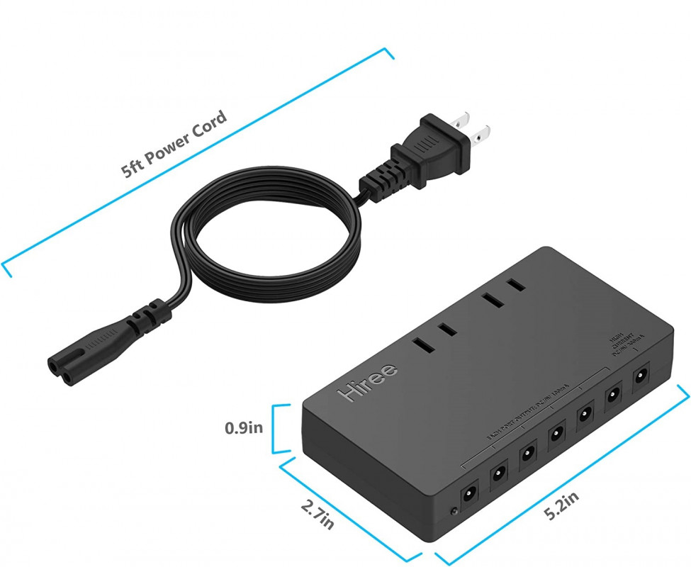 7 salidas individuales: puerto de 9 V 100 mA x 6, puerto de 9 V 300 mA x 1.